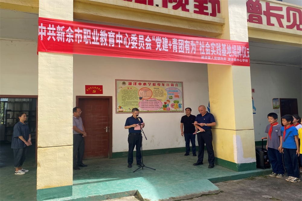 仪式上,湖泽镇中心学校校长赵金生致欢迎辞,新余市职业教育中心党委副书记黎宇,湖泽镇党委副书记、镇长傅强分别对社会实践基地揭牌仪式进行了讲话。