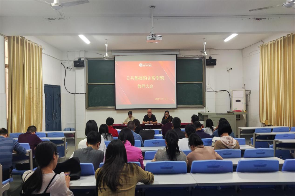 10月13日下午,公共基础部开展学习贯彻习近平新时代中国特色社会主义思想主题教育活动暨教师大会。会议由公共基础部主任闵文群主持,副校长李峰及高考部全体教职工参加会议。