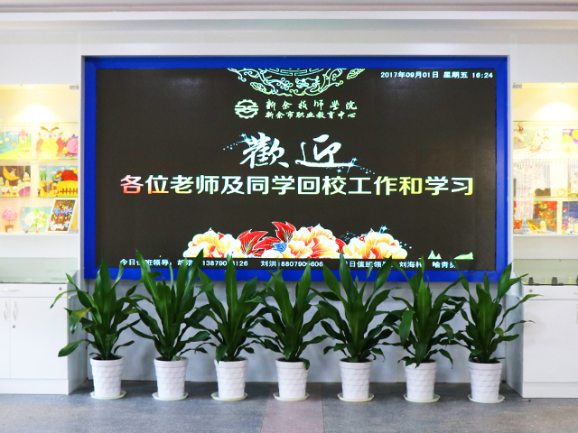 报名现场,校园公示牌上班级名单、收费公示、报到须知及安全提示十分醒目,20名新生班主任严阵以待,忙而不乱,喜迎新生到来。教学楼电子屏及横幅上的欢迎标语更是透出温馨的暖意,学生志愿服务队的同学们手戴红袖章,分布在校门口、招生办、教学楼、学生公寓主动为前来报到的新生提供帮助,校园整体开学工作有条不紊、紧张有序。